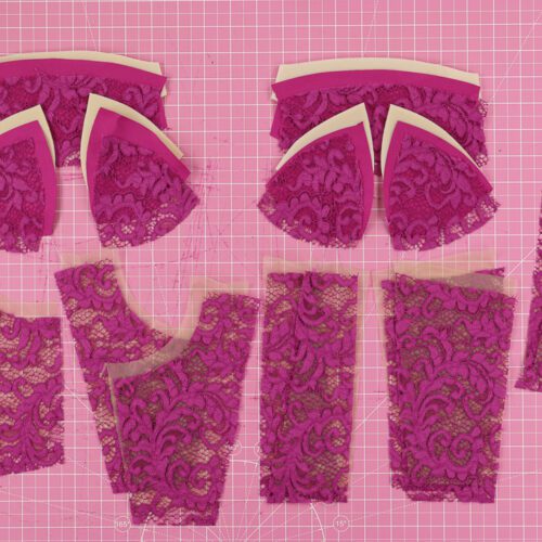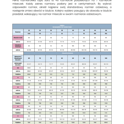 • Wykrój  formatu A4 w wersji z zapasami na szwy w rozmiarach odzieżowych XXS-3XL z kombinacjami rozmiarów miseczek od AA do E – tabela rozmiarów TUTAJ